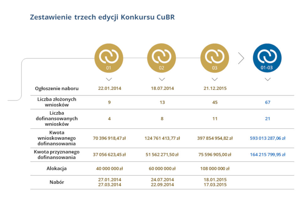 W ramach I, II i III konkursu realizowano 22 Projekty, których wartość oscyluje w granicach 160 mln zł.